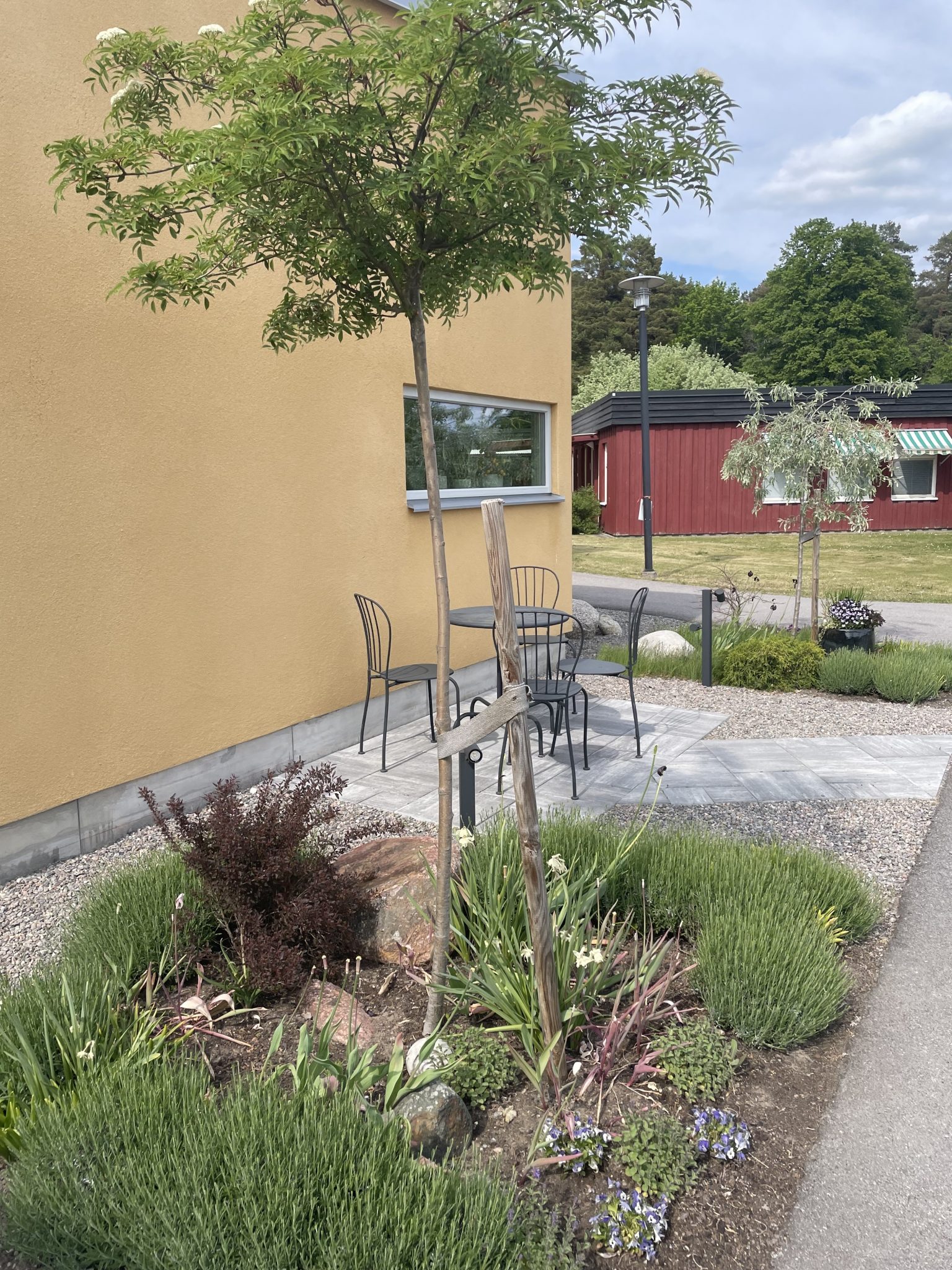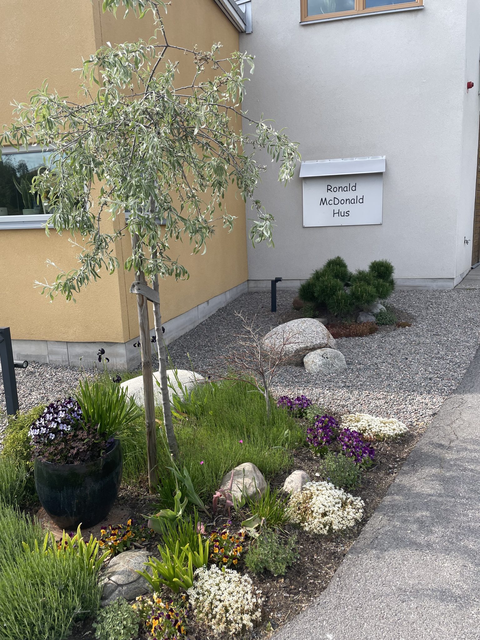 Det första man möts av när man når Huset är vår entré och en stor vacker rabatt och stenläggning. Med hjälp av Blomstertorget, Vreta grävtjänst, Jt´s, Vikingstad Åkeri och Soljord AB kunde vi 2021 färdigställa renoveringen av ytan som ramar in Husets framsida. Det som tidigare endast var en häck är nu en prunkande rabatt med blomster som möter våra familjer när de ska checka in hos oss.